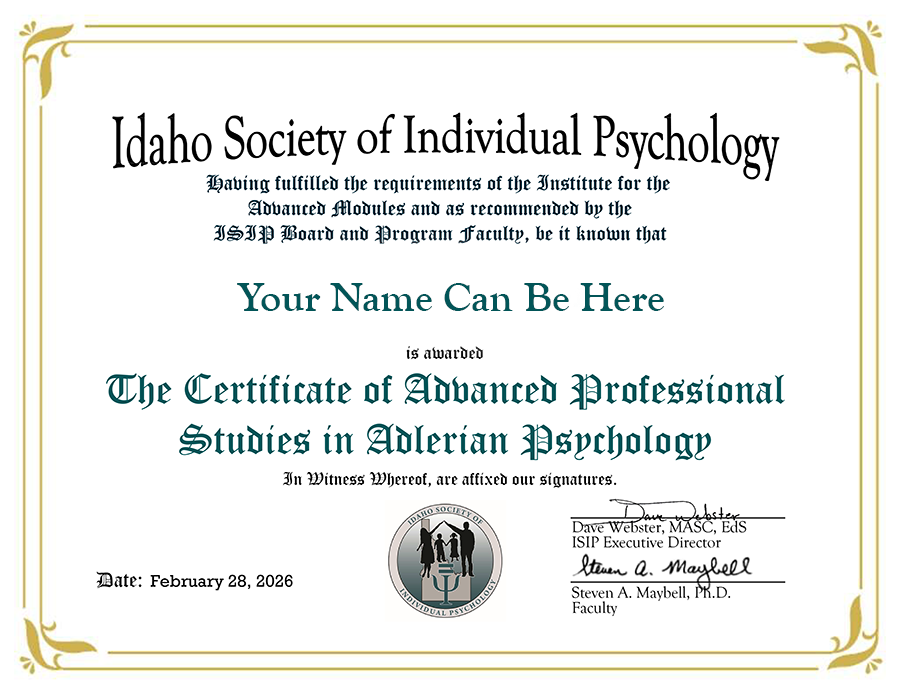 Earn your Certificate of Advanced Professional Studies in Adlerian Psychology!