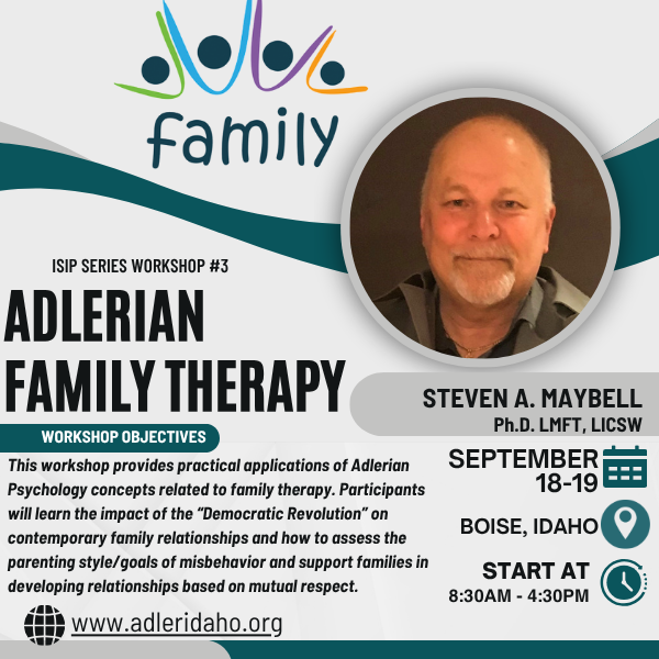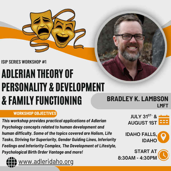 The Idaho Society of Individual Psychology offers workshops throughout the year specifically in Adlerian Theory and related subjects. ISIP provides the highest quality workshops which provide “Continuing Education Credits” and accreditation for “Certification of Professional Studies in Adlerian Psychology.”
